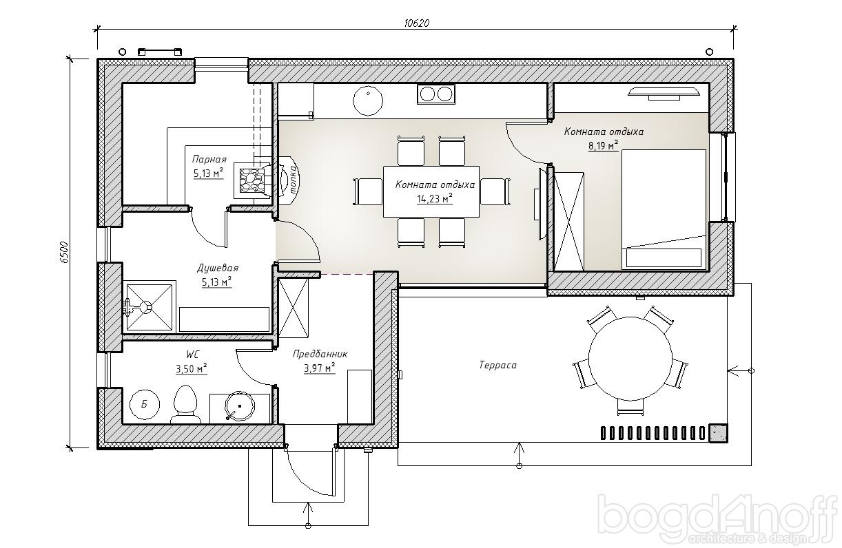 - ХИТ Строительства. КВ-99. Комфортная баня 10.6*6.5 метров