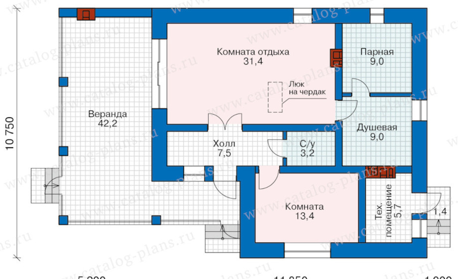 парилка, комната отдыха, гостевая комната, сан-узел.: