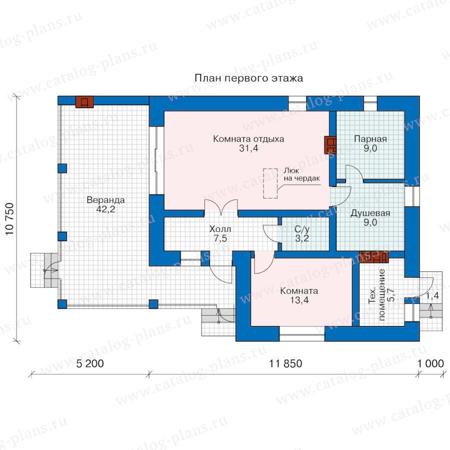- Р-64. Банный комплекс с террасой 11.85x10.75 метров
