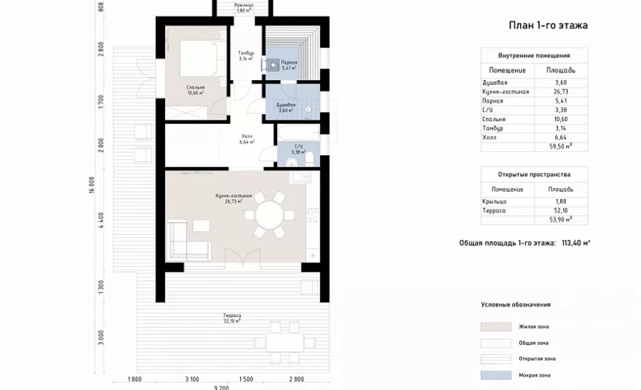 Строгие линии, панорамные окна и гармоничное сочетание отделочных материалов создают элегантный внешний вид. Строительство из блоков гарантирует долговечность, прочность и отличные теплоизоляционные свойства, обеспечивающие комфорт в любое время года. Общая площадь первого этажа — 113 м², где расположены просторная кухня-гостиная площадью 27 м², спальня 11 м², парная 5 м², душевая 4 м² и санузел 3 м². Второй этаж площадью 45 м² включает две спальни по 13 м², холл 14 м², санузел 3 м² и уютный балкон 2 м². Просторная терраса на первом этаже (52 м²) служит прекрасным местом для отдыха на свежем воздухе. проект «С-64» идеально подойдёт для тех, кто ценит простор, современный стиль и комфорт. Проект разработан для семейного отдыха или проведения встреч с друзьями. Удобная планировка и стильный дизайн делают эту баню универсальным решением для любого участка.
