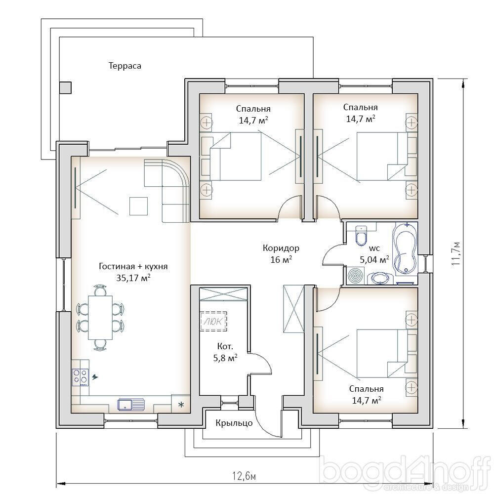 - АКЦИЯ .Проект Н-43, размер 12,6*11,7 метров.
