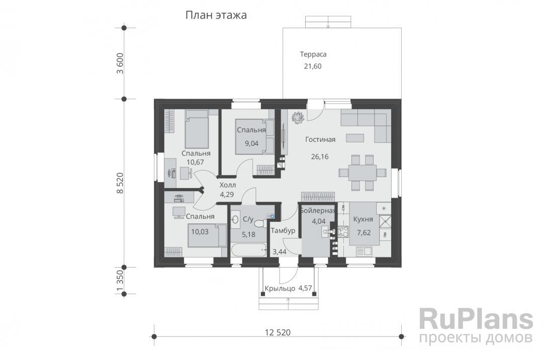 - С отделкой . Дом с тремя спальнями 12,5 x 8,5 метров