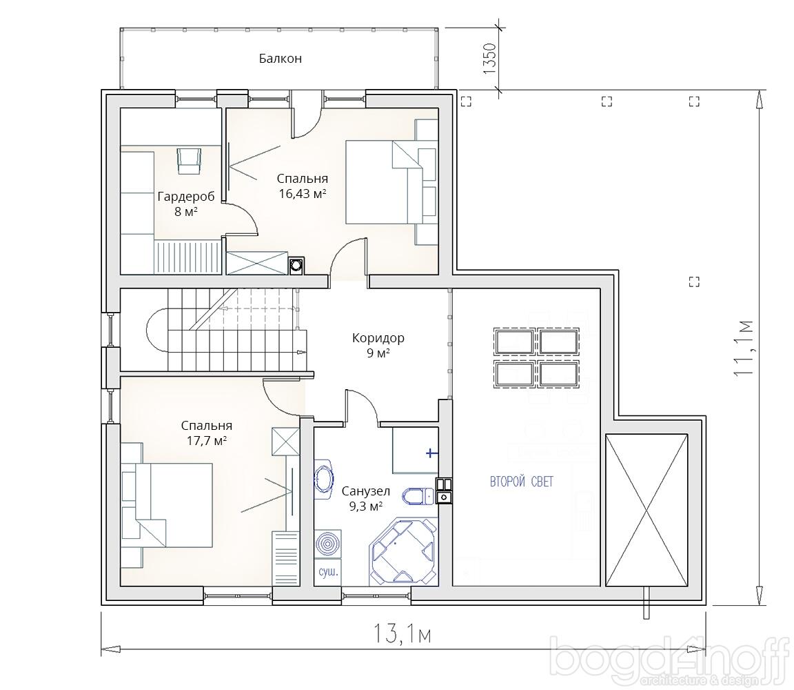 - С ОТДЕЛКОЙ .Т-65 Жилой коттедж 13.1 * 11.1 метров