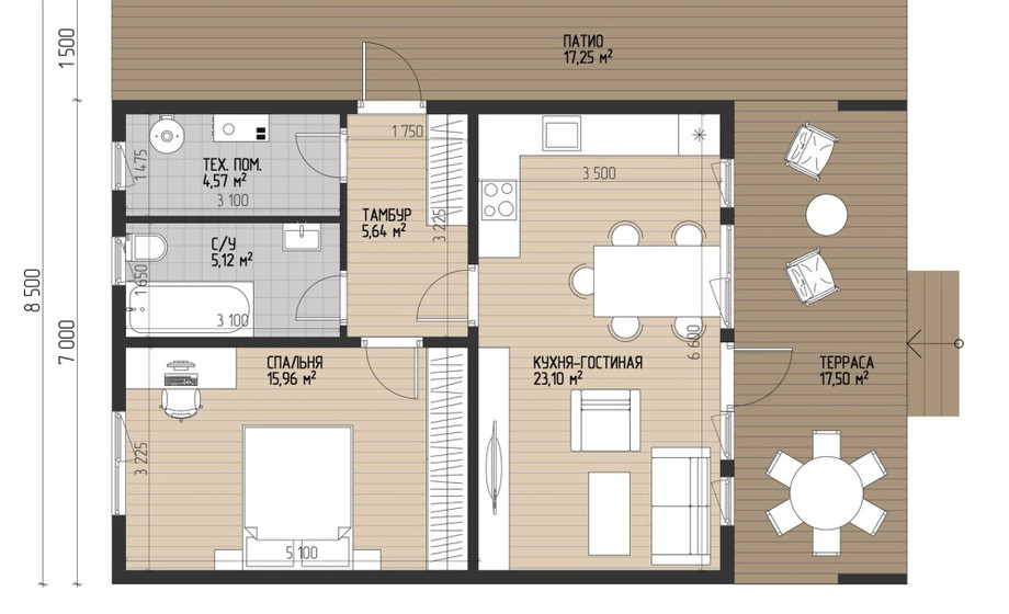 - НОВИНКА Одноэтажный дом с террасой 7x9 метров