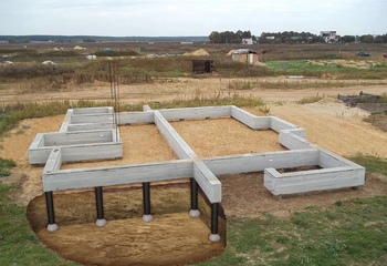 Геологические изыскания места строительства, конструктивное решение на строительство фундамента, выравнивание площадки, подсыпка, уплотнение грунта, монтаж закладных для ввода (воды, электроснабжения, канализации итд) гидроизоляция, утепление(если необходимо), монтаж опалубки, армирование, заливка, демонтаж опалубки.