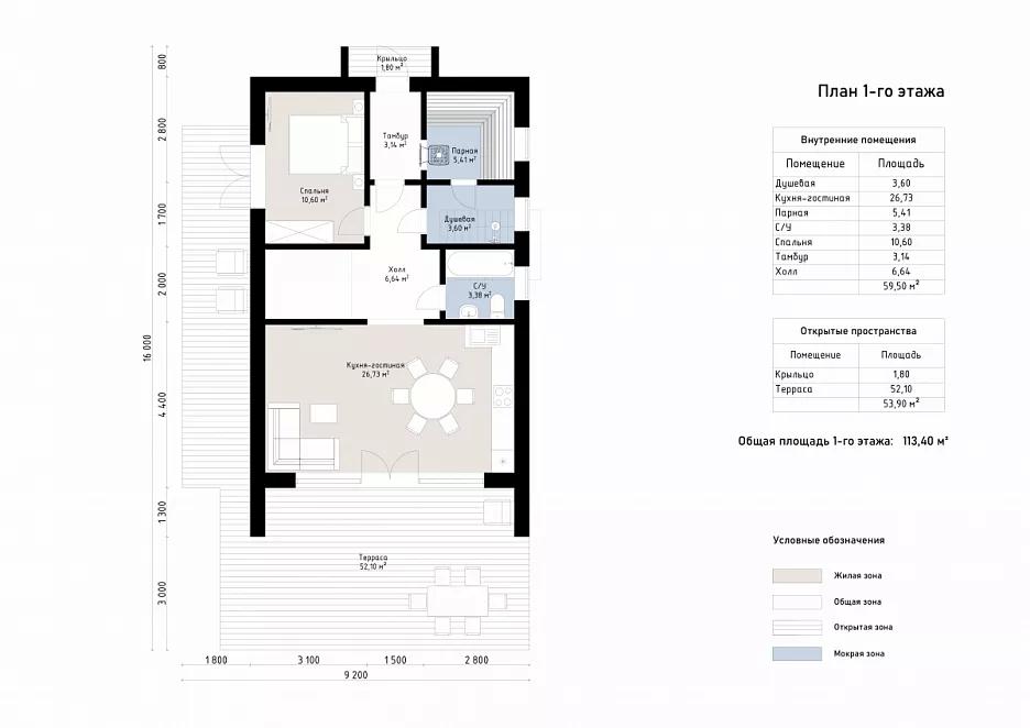 Строгие линии, панорамные окна и гармоничное сочетание отделочных материалов создают элегантный внешний вид. Строительство из блоков гарантирует долговечность, прочность и отличные теплоизоляционные свойства, обеспечивающие комфорт в любое время года. Общая площадь первого этажа — 113 м², где расположены просторная кухня-гостиная площадью 27 м², спальня 11 м², парная 5 м², душевая 4 м² и санузел 3 м². Второй этаж площадью 45 м² включает две спальни по 13 м², холл 14 м², санузел 3 м² и уютный балкон 2 м². Просторная терраса на первом этаже (52 м²) служит прекрасным местом для отдыха на свежем воздухе. проект «С-64» идеально подойдёт для тех, кто ценит простор, современный стиль и комфорт. Проект разработан для семейного отдыха или проведения встреч с друзьями. Удобная планировка и стильный дизайн делают эту баню универсальным решением для любого участка.