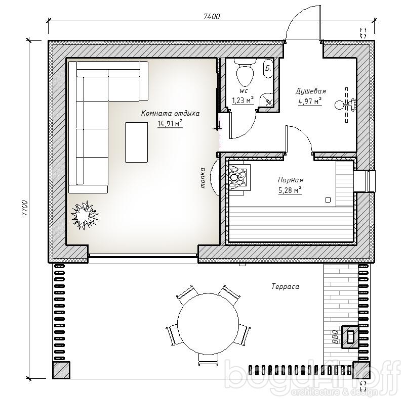 - ХИТ строительства. Комфортабельная баня 7.7 *7.4 метров