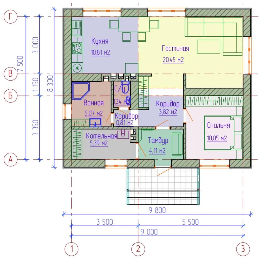 - АКЦИЯ .Проект -001 размер 9.8*8.3 метров.