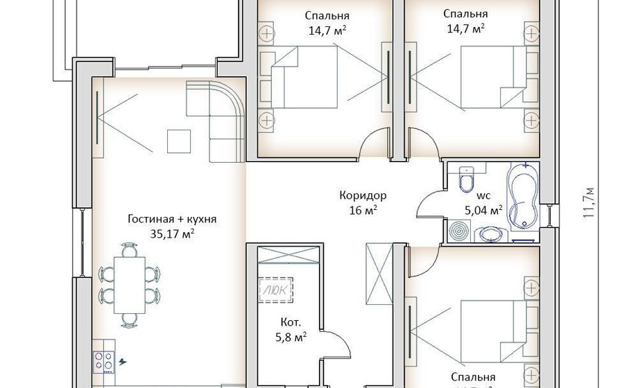 - АКЦИЯ .Проект Н-43, размер 12,6*11,7 метров.