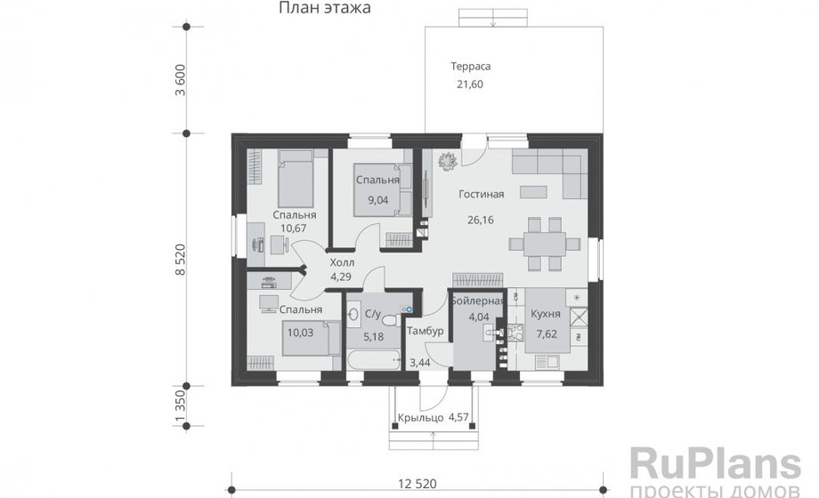 - С отделкой . Дом с тремя спальнями 12,5 x 8,5 метров