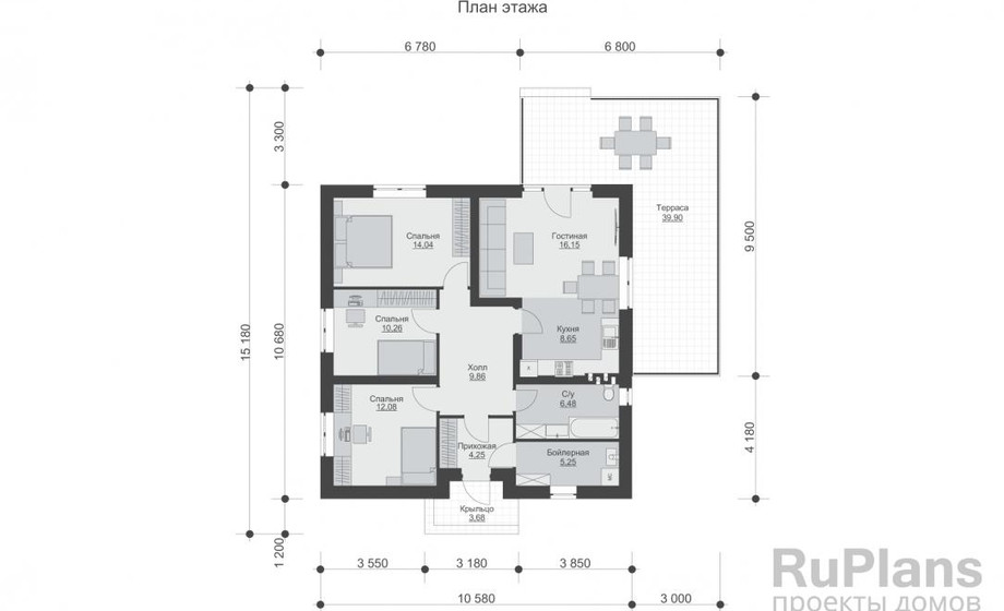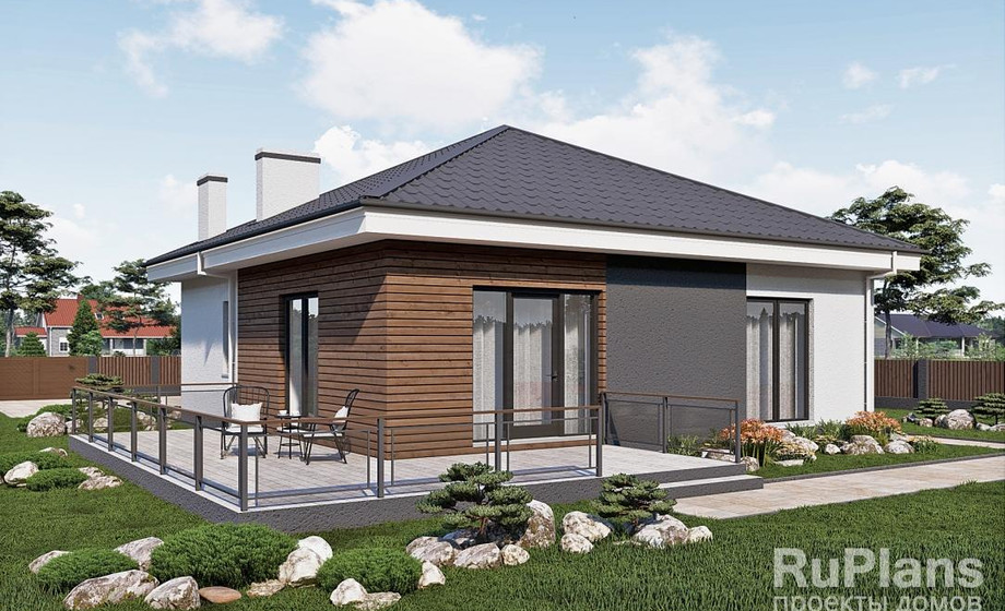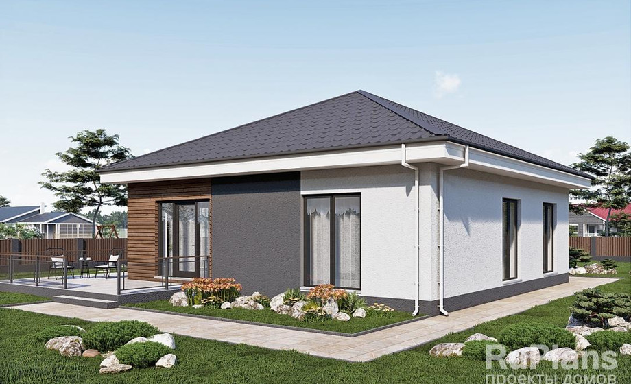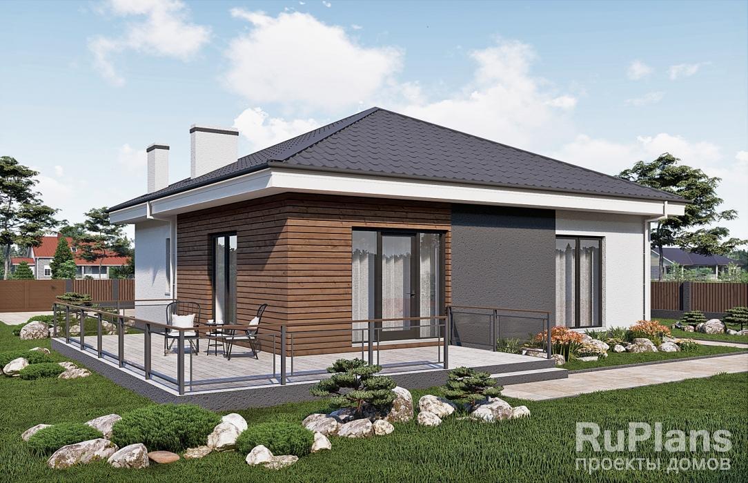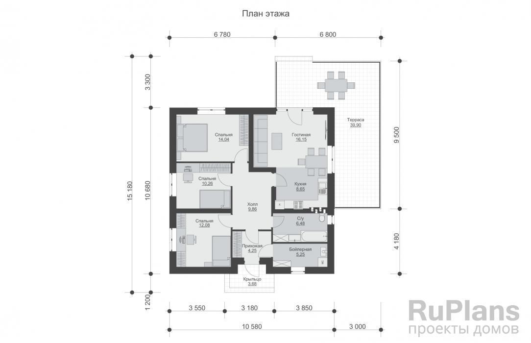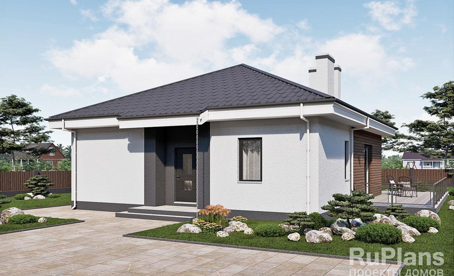 - С отделкой ТИ-49. Дом с тремя спальнями 10,7 x 10,6 метров.