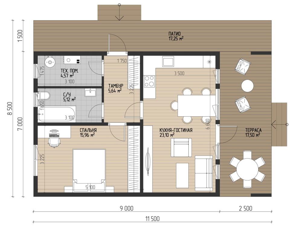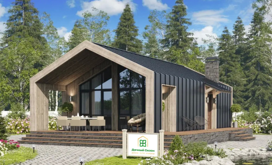 - НОВИНКА Одноэтажный дом с террасой 7x9 метров