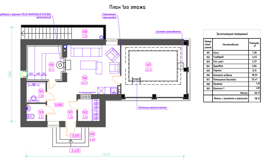 - НОВИНКА. Е-77. СПА-комплекс с цокольным этажом 7.9*13.2 метров.