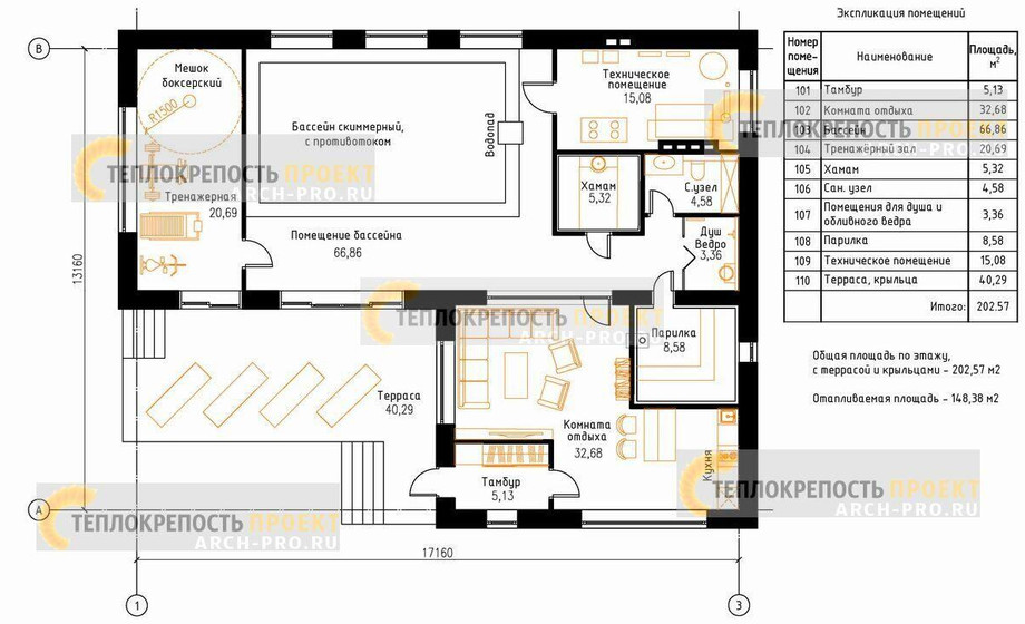 Оборудование для бассейна в стоимость не входит. Строительство с отделкой после согласования отделочных материалов.